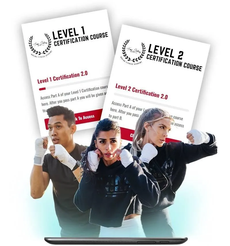 The Boxing Fitness Academy, taught by Olympic Medalist Tony Jeffries, is the world’s No.1 boxing certification course. It includes two levels of coaching designed for personal trainers and anyone who wants to expand their knowledge and income by offering boxing fitness.